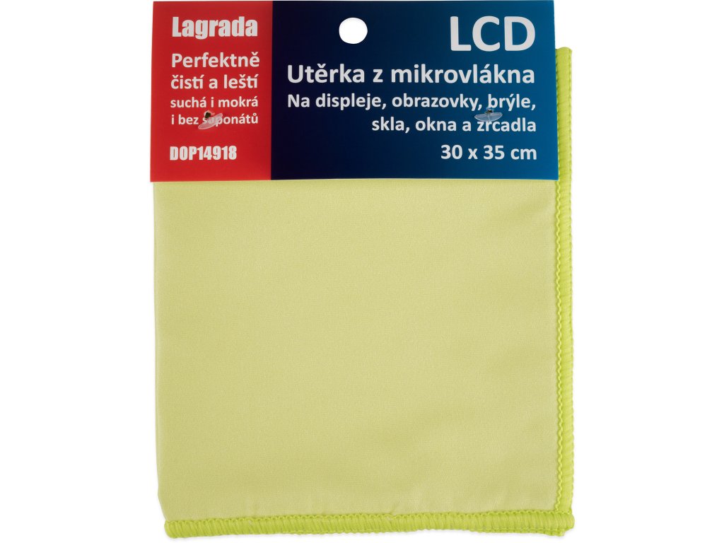 Utěrka z mikrovlákna o rozměrech 30 x 35 cm, 250 g/m2, perfektně čistí a leští suché i mokré povrchy i bez použití saponátů, vhodná na LCD dipleje, vysoké sací účinky, nepouští vlákna. Perfektní hadřík na brýle, okna, skla, zrcadla, obrazovky, displeje mobilních telefonů, tabletů. Čistí a leští i zlato, stříbro, porcelán.