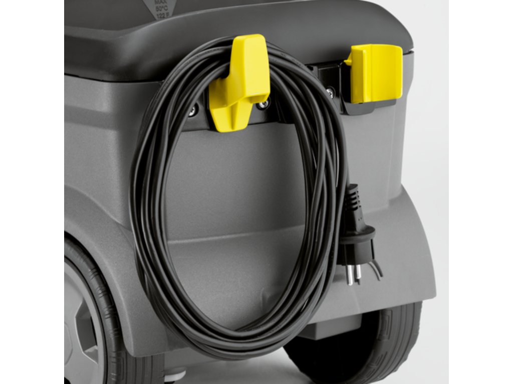 Všestranný extraktor Puzzi 10/1 oceníte při úklidu menších kanceláří a společenských místností. Nástřikový tlak o hodnotě 1 bar umožní šetrné hloubkové čištění koberců a čalounění. Přístroj navíc zanechává povrchy téměř suché, takže je lze vzápětí opět použít. Úzká podlahová hubice se dokonale hodí pro úklid stísněných prostor. Její flexibilní sací stěrka zajistí perfektní kontakt s povrchem, i když vysáváte pod nábytkem. Při péči o čalounění se osvědčí také praktická ruční hubice. Ergonomická, výškově nastavitelná rukojeť zajistí maximální komfort při práci. Úklid ulehčí rovněž objemná 9l nádoba na špinavou vodu, kterou jednoduše vyjmete a vylijete. A když je hotovo, kabel i sací trubky snadno připevníte k přístroji.